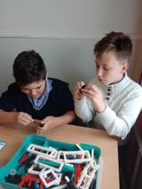 Юные конструкторы работают как индивидуально,так и  парами или в группах, создавая интересные проекты, механизмы и электронные роботы, которые приводят в движение забавные механизмы.